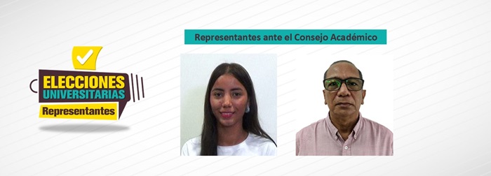Yeisuris Vanessa Hernández Navarro, como Representante estudiantil ante el Consejo Académico y Francisco José Torres Hoyos como representante profesoral también al Consejo académico.