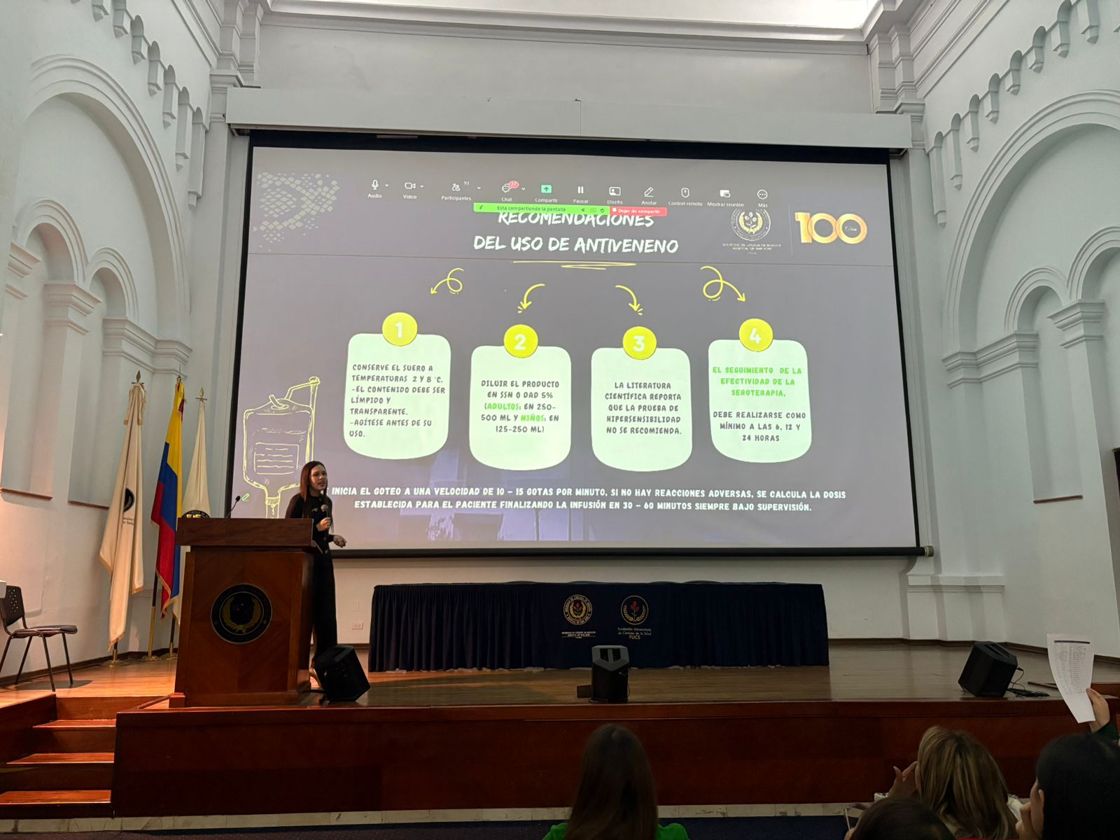 Durante este evento académico, la Dra. Jennifer Vicuña Vanegas, coordinadora de posgrados y profesora de la Universidad Cooperativa de Colombia, participó como conferencista, presentando la ponencia titulada “Accidente ofídico: enfoque clínico y actualizaciones recientes".