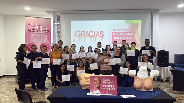 En el marco de la conmemoración del Día Mundial de la Lucha contra el Cáncer de Mama, el pasado 7 de noviembre se llevó a cabo una jornada de prevención y sensibilización en el Hospital de Granada, con la participación de profesores y estudiantes de la Universidad Cooperativa de Colombia, Campus Villavicencio, adscritos a la Facultad de Ciencias de la Salud.