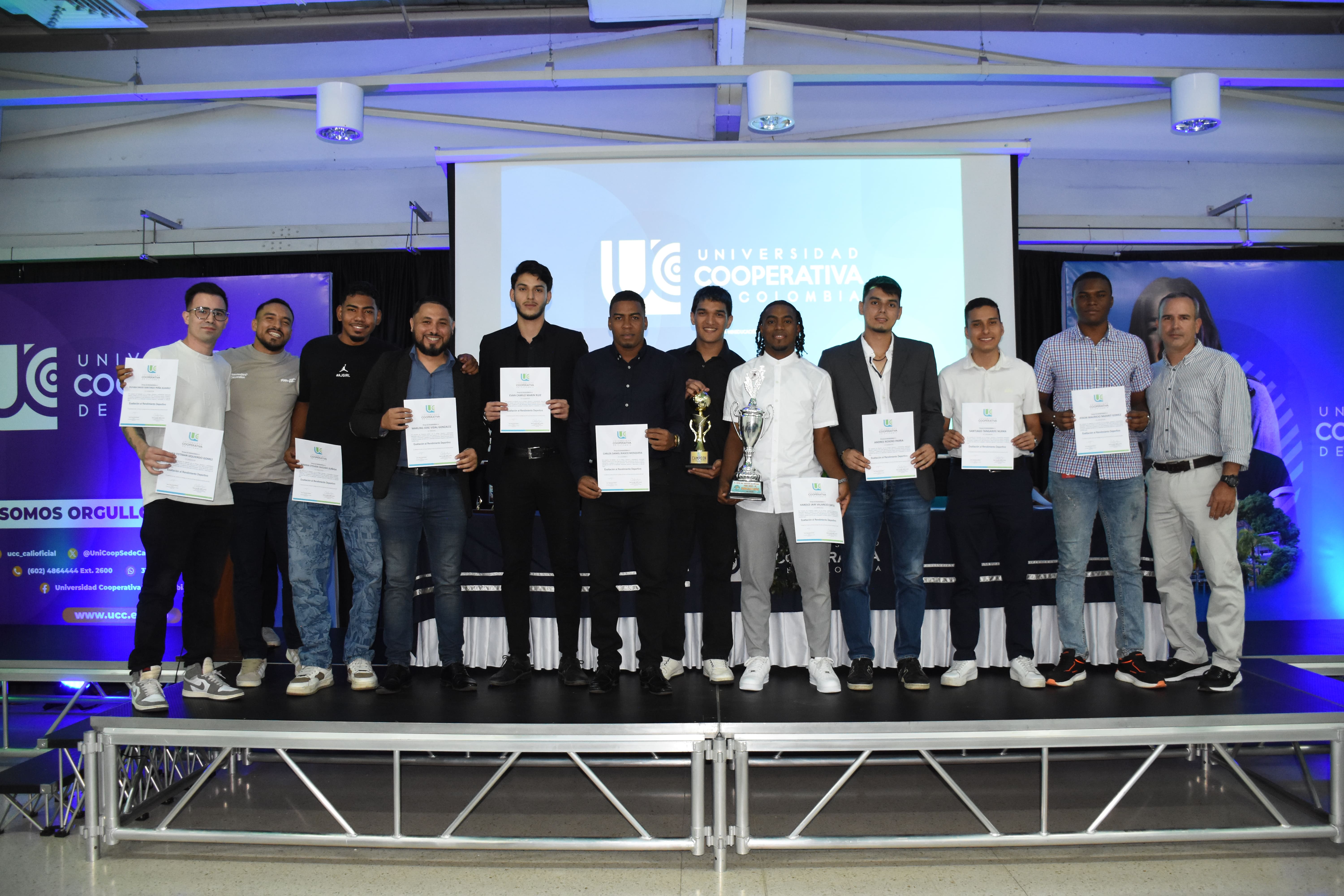 Un momento destacado fue la exaltación a los egresados Juan Esteban Franco Ortega (Voleibol Masculino) y Warling José Vidal González (Fútbol Masculino), quienes continúan representando a la Universidad con un profundo sentido de pertenencia.