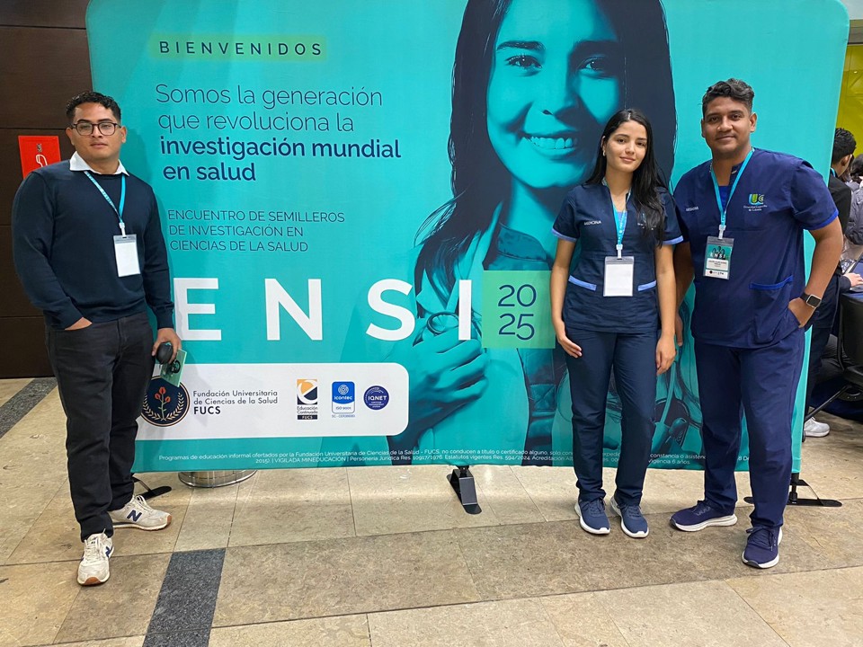 La Universidad Cooperativa de Colombia – Campus Santa Marta continúa fortaleciendo su compromiso con la investigación y la formación científica, esta vez con la destacada participación de los estudiantes Andrés Felipe Suárez Urieles (Semillero de investigación de Medicina Interna - SIMI), Camila Alejandra Yépez García (Semillero de Investigación ITENTROP Bioinformática – medicamentos) y Wilson David Martínez Paba (Semillero de investigación IPA Inmuno-parasitología), quienes representaron al programa de Medicina en el VII Encuentro Nacional de Semilleros de Investigación en Ciencias de la Salud (7mo ENSI), realizado en la Fundación Universitaria de Ciencias de la Salud (FUCS), en la ciudad de Bogotá.