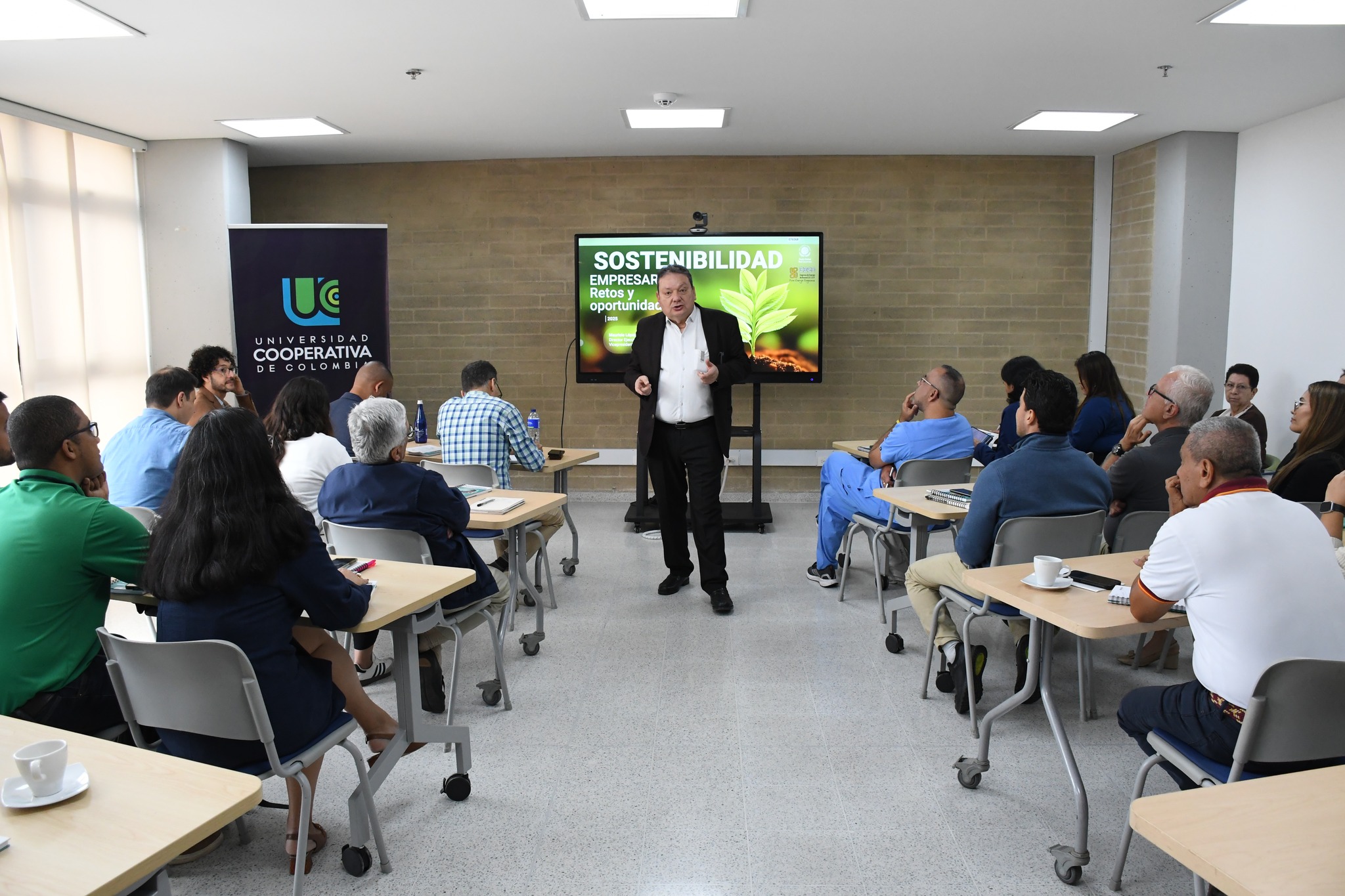 En el marco del XI Congreso Internacional de Desarrollo Sostenible, Mauricio López González, director ejecutivo del Pacto Global Colombia, ofreció la conferencia inaugural sobre liderazgo responsable y sostenibilidad corporativa. También participaron expertos como Sandra Consuelo Muñoz Moreno y Juan David López Montoya, quienes abordaron tendencias globales en reportes y auditorías de sostenibilidad, así como retos para el sector empresarial.