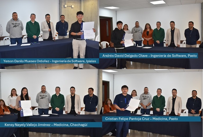 La Universidad Cooperativa de Colombia, campus Pasto, entregó cuatro becas completas a jóvenes sobresalientes del departamento de Nariño en el marco del programa nacional “Transformando vidas, impulsando talentos”, iniciativa que reconoce el esfuerzo académico de quienes obtuvieron los mejores resultados en las pruebas Saber 11 en los municipios aliados: Pasto, Ipiales y Chachagüí.