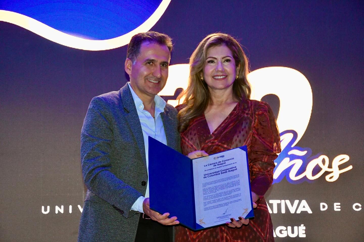 Durante la ceremonia, la institución recibió múltiples reconocimientos por parte de la Gobernación del Tolima, la Alcaldía de Ibagué, la Asamblea Departamental, el Concejo Municipal, la Comisión Legal para la Equidad de la Mujer, la Fuerza Aeroespacial Colombiana, Tribunal Superior de Ibagué , la Cámara de Comercio de Ibagué, Universidad del Tolima, Comfatolima, Ondas de Ibagué, Confecoop y el Colegio de Jueces y Fiscales del Tolima, entidades que exaltaron el aporte de la Universidad al fortalecimiento educativo, económico y social de la región.