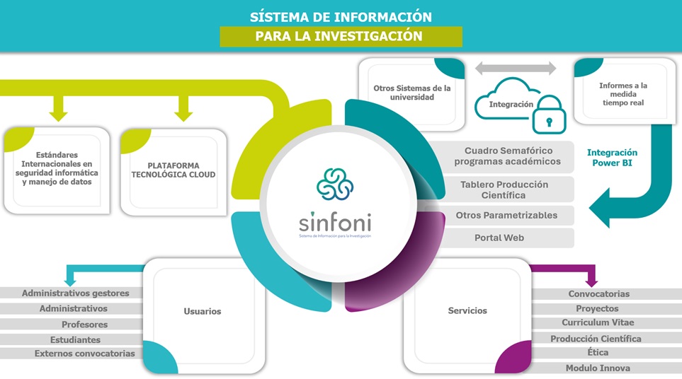 Desde junio de 2017, la Universidad inició el cronograma de trabajo para implementar el sistema de información, denominado Sínfoni: Sistema de Información para la Investigación, que busca gestionar y visibilizar la investigación institucional, sus investigadores, los proyectos y resultados a través del trabajo articulado y la comunicación científica para desarrollo de productos de alta calidad.